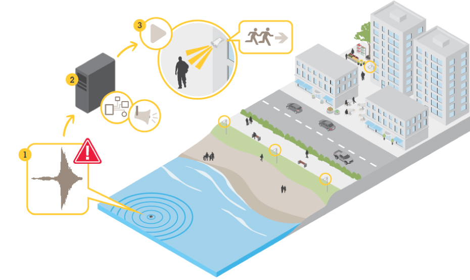 En una situación de emergencia, como en un terremoto o tsunami, cada segundo cuenta. Combinando los sensores sísmicos con altavoces de red Axis para avisos por megafonía e instrucciones de evacuación, conseguirá ganar eficiencia y, en última instancia, salvar vidas.